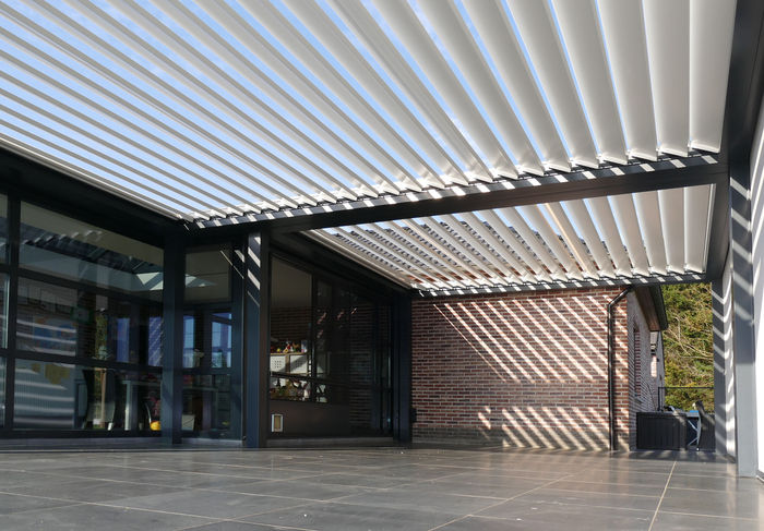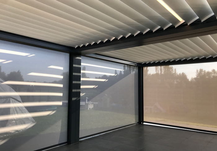 Uitgerust met drie screens die al naargelang de zonnestand of wind kunnen gesloten worden. De klant kan nu het grote terras anders inrichten en veel vaker genieten, samen met hun kinderen.